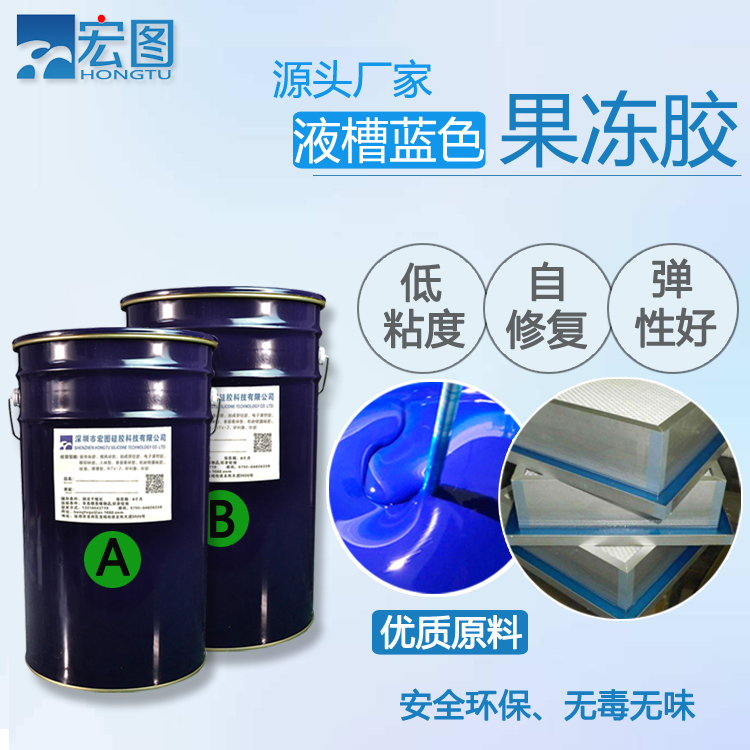 液槽膠也叫果凍膠、液槽果凍膠,是一種AB雙組份液體硅膠,A組分為透明液體,B組分為藍(lán)色(顏色是可以根據(jù)客戶需要進(jìn)行調(diào)整的),安全環(huán)保,高韌性,固化后密封效果優(yōu)異。
